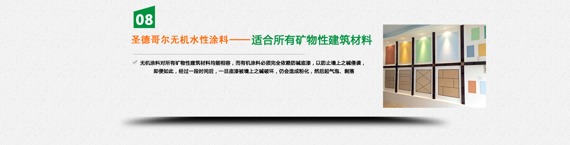 圣德哥爾無機水性涂料有限公司是中法技術合作,集新型墻體材料、地坪裝飾、金屬裝飾保護材料的研制、開發、生產、銷售、服務于一體的科技型、綜合型企業。公司秉承“科技第·一,質量為本,用戶至上”的原則,立足于高標準、嚴要求,擁有現代化生產設備和先進的檢測儀器,已逐步建立起科學完整的結構體系。產品有各種無機內外墻涂料、無機地坪涂料、無機防銹涂料、無機底漆、罩光漆等一系列產品,結構體系完·美、性能質量穩定。產品各項指標達到國家或超過國家標準。